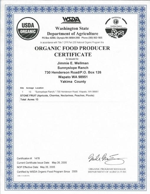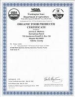 June 4, 2005: We've received our Organic Food Producer Certificate! Click on the cert to see an enlarged view. We are very excited! |