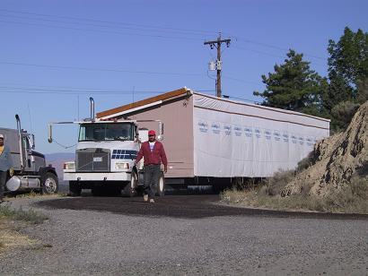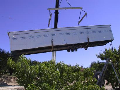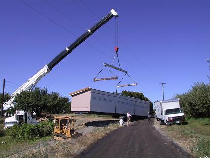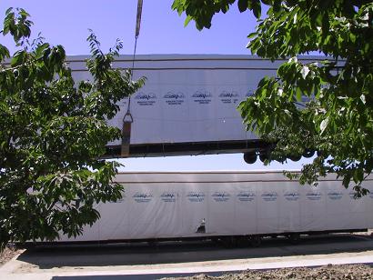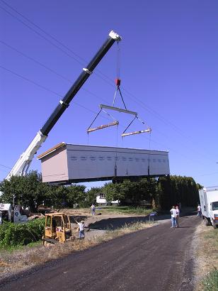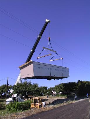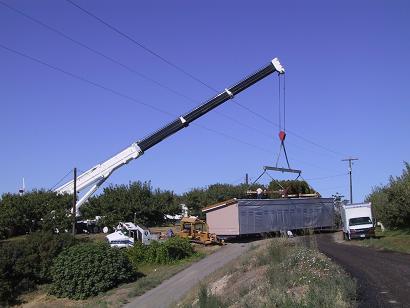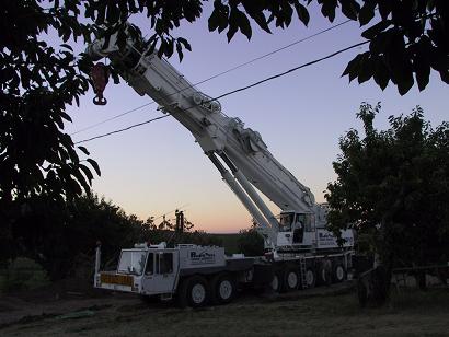 OK... cherry season is over and this thing is a bit big to be a cherry picker. So, it must be true. After months and months of waiting, our house is on its way! The crane team arrived at 5:30AM to set up.