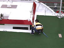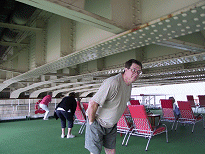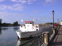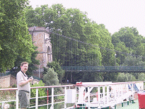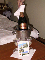 Lunch: 'becca had steak with red wine sauce; I had a foie gras appetizer, then chicken in cream sauce; for dessert we both had ice cream; our wine was a '96 Chinon (Loire red) Chateau de Sonnay (pretty good!) We tried to get more cough syrup, but the pharmacie didn't have the one we'd been using. We went back to the boat ~3:00. Dinner was an ambitious menu, as it was the Farewell Dinner. Dinner: Wines: When we arrived back in our room after dinner, we found a wonderful bottle of Krug Champagne and a card "Congratulations, Newlyweds!" signed by all our fellow wine lovers. It was such a thoughtful and wonderful treat.